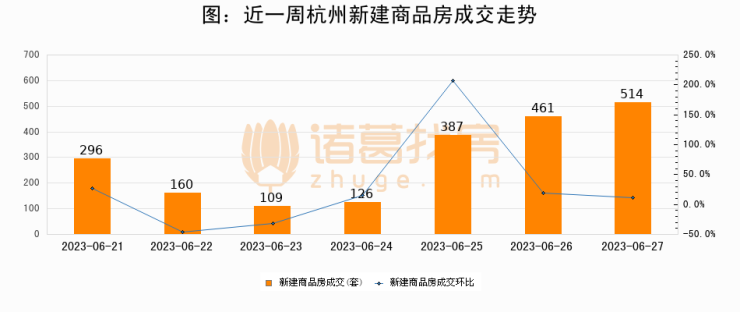 【杭州成交日报】06月27日新房成交514套、二手房164套;涨价房源156套