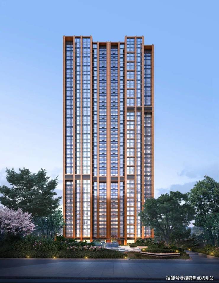 龙盛·湾上住宅建筑采用塔冠的设计,与区域内天际线交相呼应;立面选用低饱和度的橙色和深灰色作为主基调色,使用铝板结合深灰色门窗线条,形成简约高奢的风格,能够经历时间考验,发自本质之美。