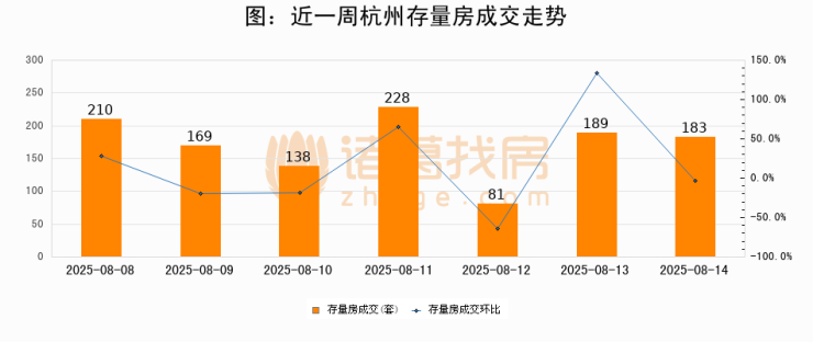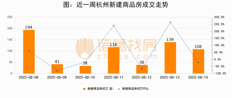 【杭州成交日报】08月14日新房成交108套、二手房183套;涨价房源23套