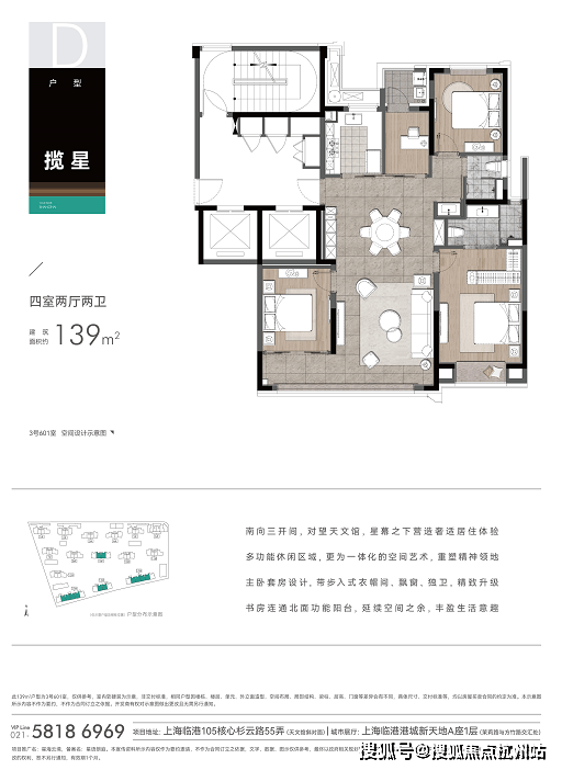 建面约139㎡户型,2种户型选择,打造大面宽景观视野,再搭配全景玻璃,坐在客厅上抬头望去,公园美景尽收眼底。南向三面宽设计,主卧搭配飘窗,夜晚更可陪伴孩子在窗前眺望浩瀚星空;尊崇主卧套房,预留衣帽间空间、卫浴等,生活于此增添从容与私密;灵动百变空间,可以收纳、娱乐、家政等多重灵活功能,适配家庭多方面空间需求。