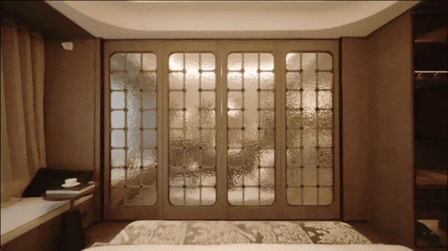 主卧的尺度感,更堪称一绝.跳脱了普通住宅的局限,在主卧和次卧之间设置推拉移门,扩大主卧的功能性,整体空间更开阔,另外还有私密卫浴空间、超大衣帽间、景观大飘窗,尊贵感、私密感足.