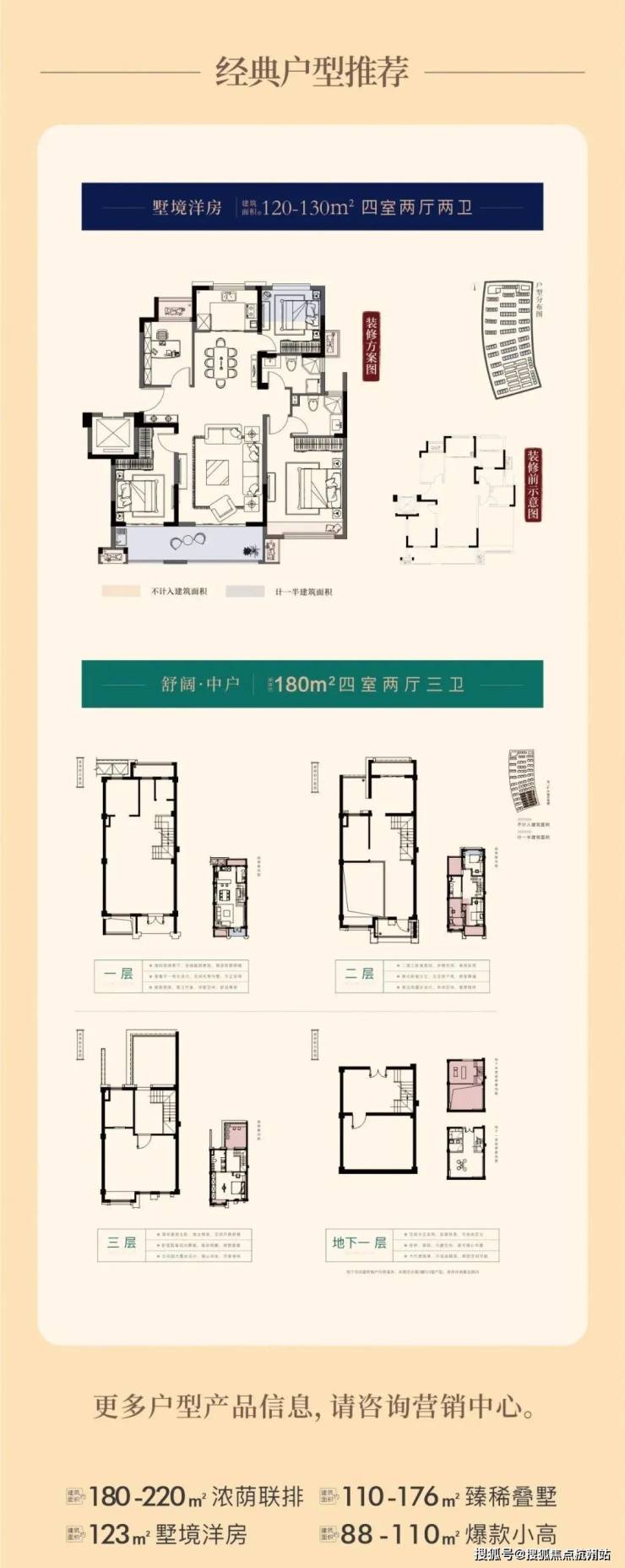 180-220㎡臻稀联排 | 110-176㎡稀缺叠墅