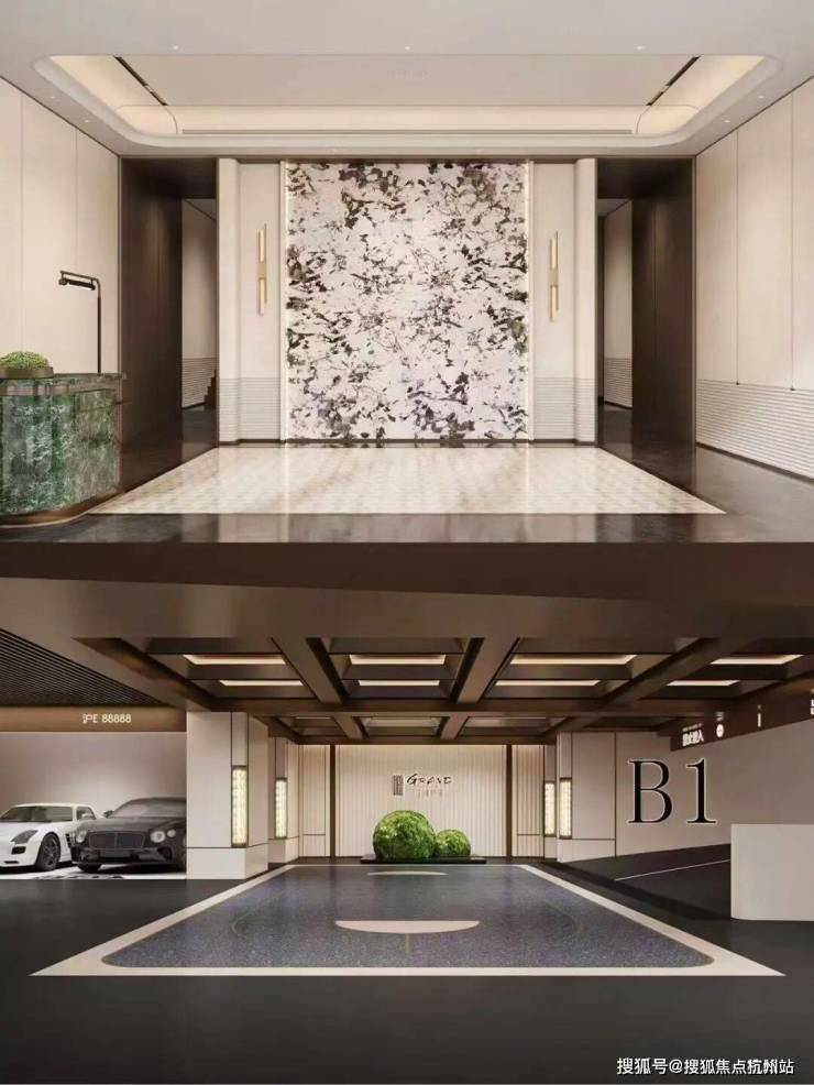整体抬升约90公分,塑造居高临下领域感;约4.75米挑高、32平米星级酒店式地上大堂,对标五星级标准