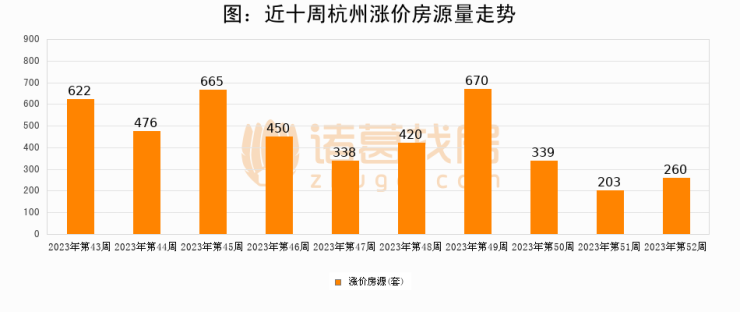 从调价房源来看,第52周杭州涨价房源260套,较上周上涨28.1%。与此同时,52周涨价房源占比提升0.03个百分点,业主信心持续恢复。