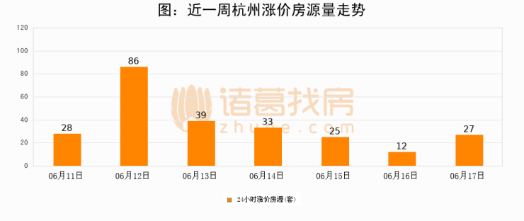 根据诸葛找房数据显示,杭州24小时涨价房源量为27套,较06月16日增加15套,环比上涨125%。与此同时,涨价房源占比小幅扩大,业主信心有所提升。