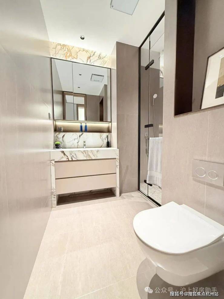 精心设计的灯光与水磨石地面,将功能性空间转化为具有五星级酒店仪式感的隐奢第一厅,让每一次回家都成为从喧嚣步入宁静的转换。