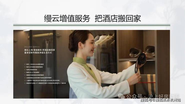 在深入研究全球各地的顶级寓所与奢华酒店之后,缦系无边际服务体系应运而生 ,包含280余项细则,建立在时间、空间、私属三个维度之上。除了无边际基础服务之外,缦云上海还为业主增设了「至善无痕」的私属增值服务,6大类27项内容,真正实现了酒店管家式服务体系与标准在住宅社区的落地。 包括每年一次专属晚宴和纪念日活动策划服务,每周2次入户保洁服务,每年1次家庭收纳,每年10天宠物托管寄养服务,儿童校车点接送、43项免费日常维修项目,健康咨询类名医名院推荐服务等等,真正做到前置化、丰富化、创新化客户的生活需求。