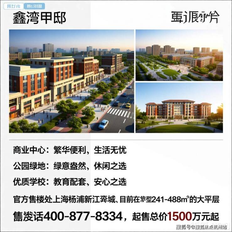 最新消息,鑫湾甲邸 新江湾城核心 建面约241-486㎡奢阔行政公馆 !总价1500万起!不限购+通燃气!