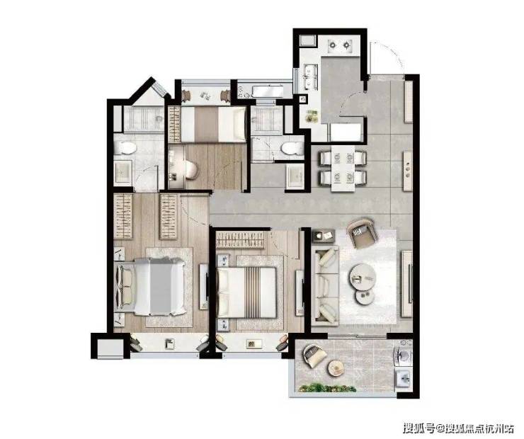·全南光氧户型·餐客一体·双卫配置·灵动飘窗·主卧套房