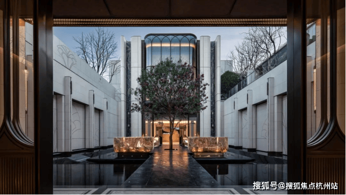 比如,整个下沉式庭院材料选用土耳其进口老虎玉,由匠人耗时60天手工打磨定制,可见海上·清和玺对业主归家仪式感设计的用心与苛求。海派光厅之外的归家迎宾树木更是由设计师辗转多个城市才寻到的、树龄超60年的福木“紫薇”。