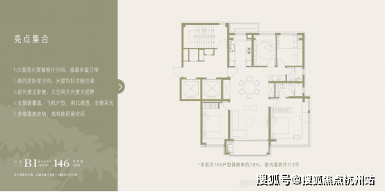 · 146㎡四房:真四房功能性+奢阔 尺度,适配多孩家庭或三代同堂需求。