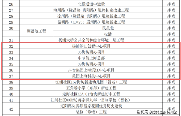这份来自杨浦区官方公示的项目清单,清晰标注了从“新开工”“在建”到“建成”的全周期进度。其中, 抖音、美团、滨江创智中心的全面建成,将杨浦滨江的发展确定性,从蓝图实实在在落地为实景。