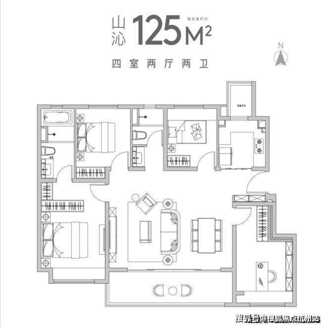 户型建筑面积:约105-125-165-185/m²