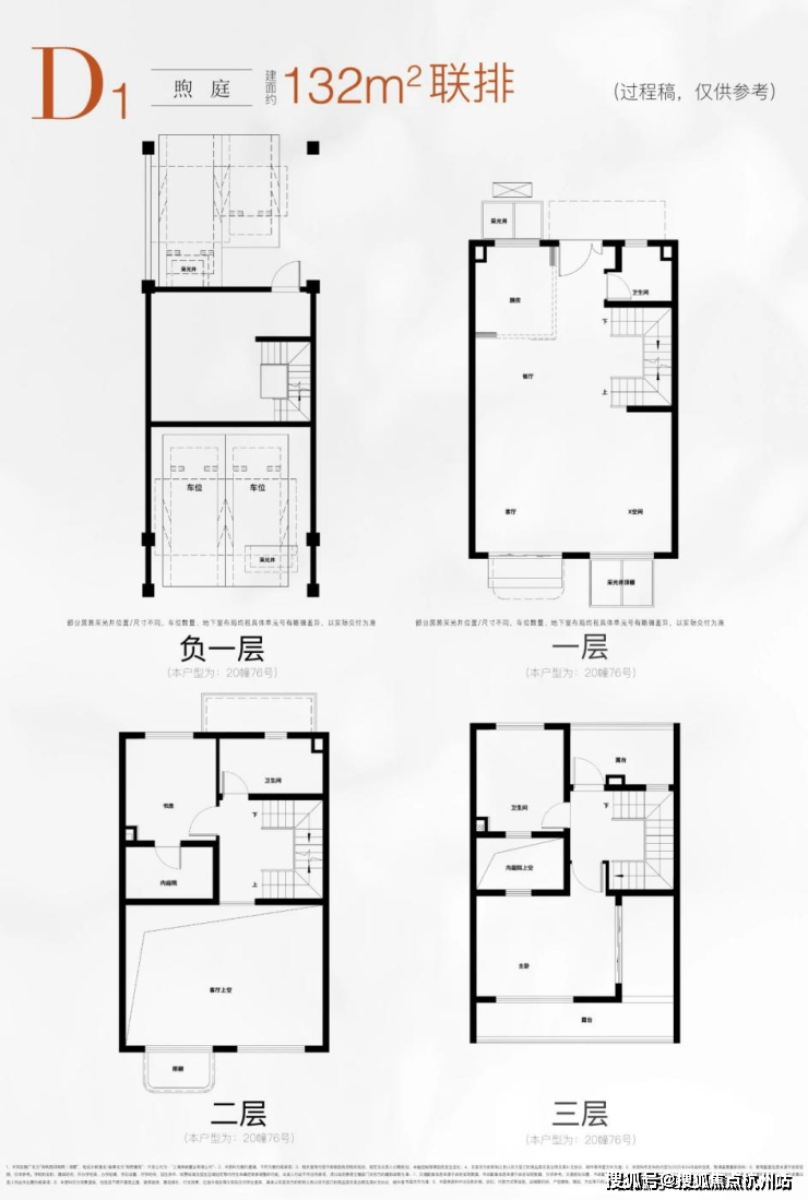 立体垂直空间,得房率的“物理翻倍”。 领墅建面约132~195m²滨水联排,通过“垂直分区+代际分层”体系,实现了远超传统大平层的实际使用空间。负一层约5.35米层高可作双层利用,庭院、露台、阳台等附加空间,让得房率不再是冰冷的数字,而是可触摸的生活尺度。