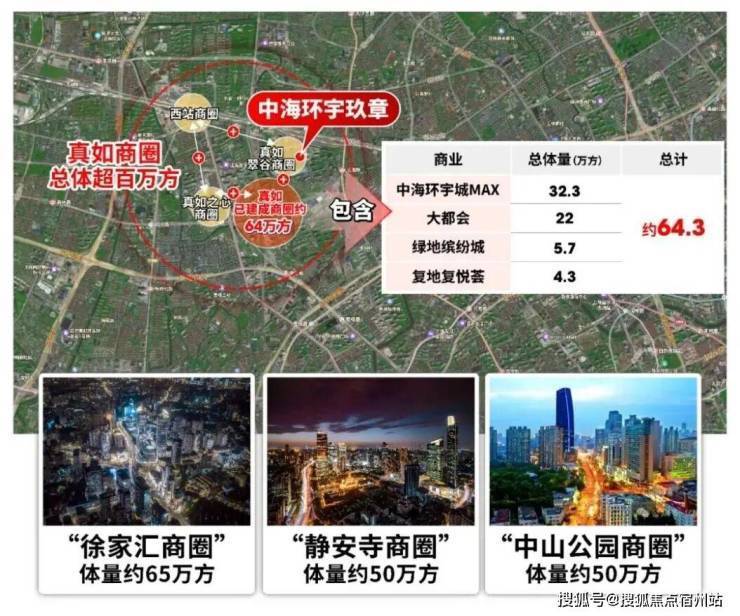 内环旁TOP级商圈,约64.3万方成熟商业集群,含约32万方顶流真如环宇城MAX(全市销售额前10的商业体)及市中心唯一山姆会员店。