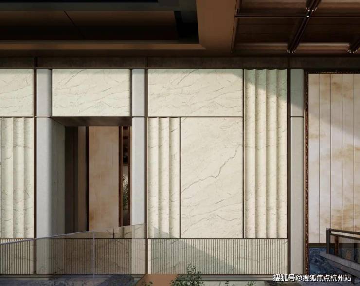 解构重檐、挂落、悬鱼等中国古代代表性建筑元素,并提取鸡血石、天目盏等吴越瑰宝之形意,以现代工艺技法予以转译重构,让东方美学与吴越文化的千年积淀,转化为可触摸的建筑美学。