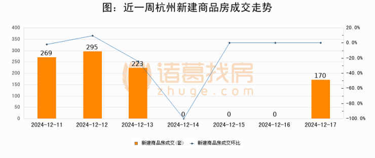 【杭州成交日报】12月17日新房成交170套、二手房269套;涨价房源34套