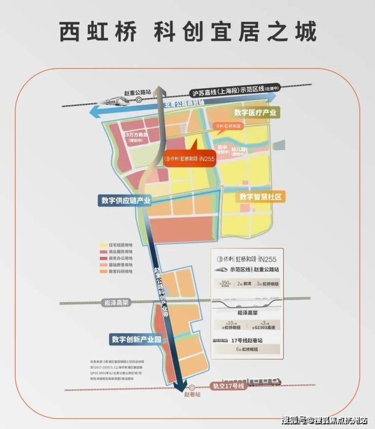 保利虹桥和颂·IN255 不仅有轨交规划正在落地,且直线距离示范区线赵重公路站(在建) 仅约350米 , 是不可多得的 真轨交盘,2站前湾、3站虹桥枢纽、5站华为基地。