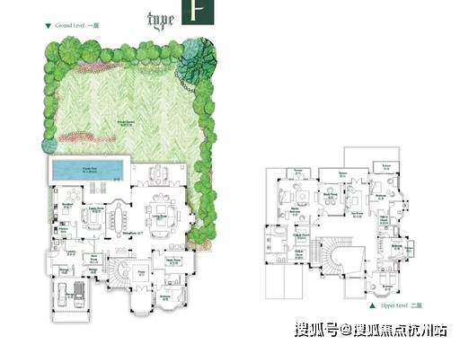 建面约 850㎡F 户型独栋别墅,是项目的楼王产品,荣获 MUSE Design Awards 金奖,以 Hermès 经典风格为设计主轴,打造 “2.5 亩私家庄园 + 8.2 米挑空大堂 + 双私家泳池 + 全套房规制” 的顶奢体验。户型南向面宽约 26 米,8.2 米挑空入户大堂搭配意大利艺术玻璃墙面,视觉震撼;地上两层无地下室设计,一楼规划超大横厅、中西双厨、南向老人套房、私人会客厅与双私家泳池区,社交空间开阔,可承载百人宴会;二楼为五个豪华套房设计,带独立卫浴、双台盆、步入式衣帽间与 270° 观景露台,尽享奢适生活;南北双花园占地约 2.5 亩,私密度极高,可定制法式宫廷园林、户外泳池、私人马场、星空茶室等,实际使用面积超 1200㎡,是家族传世与资产配置的不二之选。