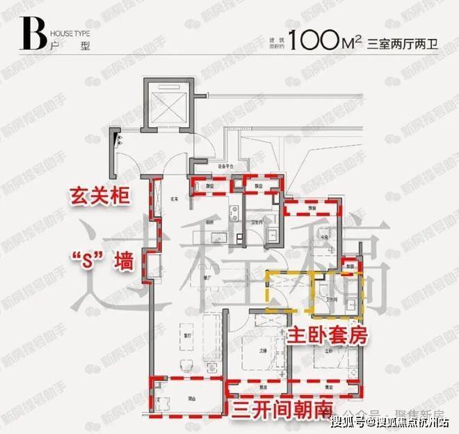 社区仅2幢住宅,是相当难得的精致社区,圈层纯净!目前样板间已开放,先来看看户型设计,可以说是相当优秀!