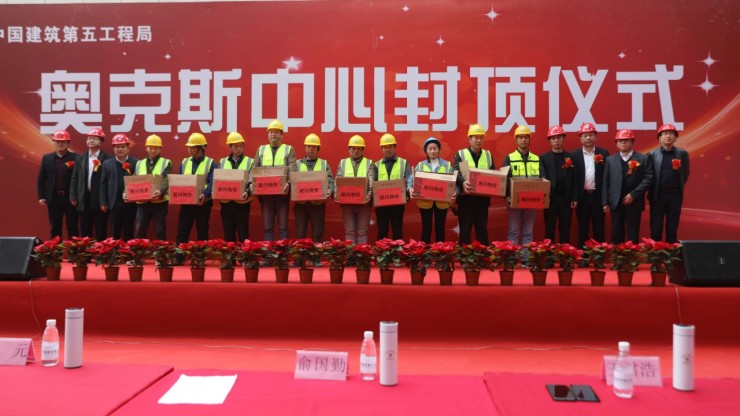 在几位领导的精彩致辞后,领导们共同慰问了一线工人。奥克斯中心能够圆满矗立在未来科技城的核芯,与他们辛勤、匠人精神、艰苦卓绝的奋斗是分不开的,向一线工作者致敬。