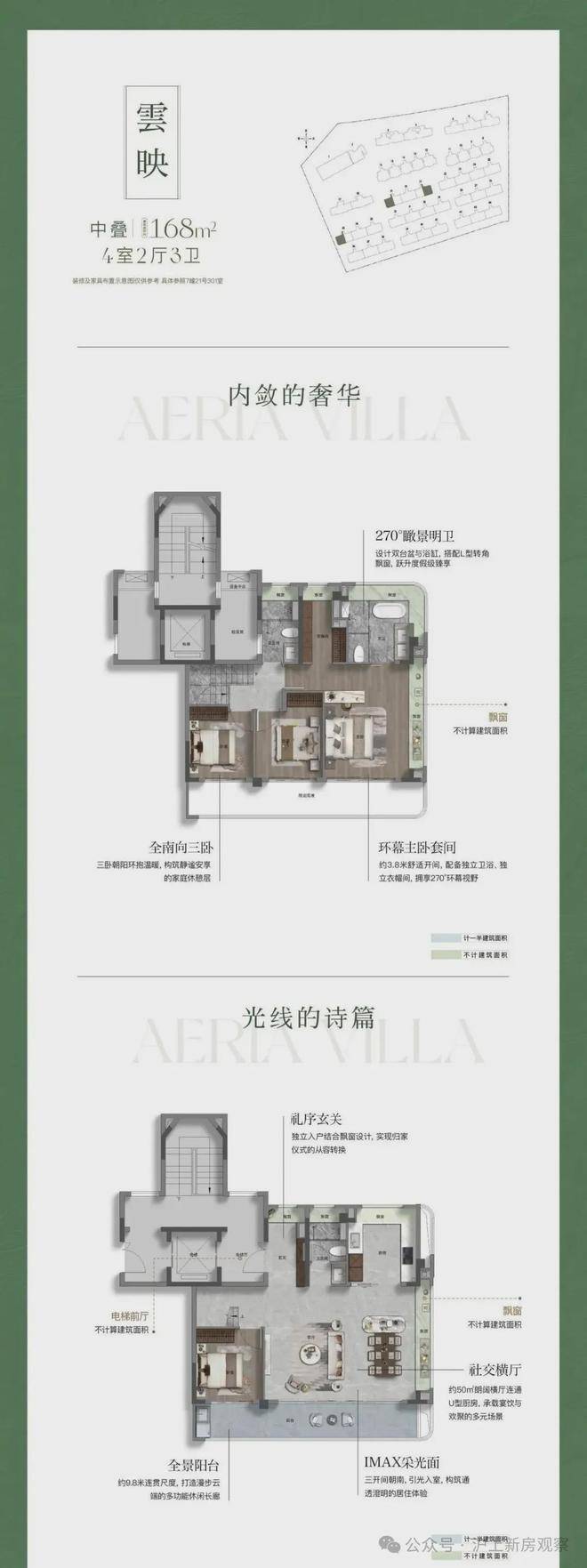 整个项目容积率仅约1.5,远低于常规住宅项目,规划了叠墅和小高层两类产品,建筑布局充分考量视野与私密性,确保每家每户都能享受充足的采光与景观资源。