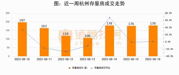 【杭州成交日报】08月16日新房成交100套、二手房178套;涨价房源25套