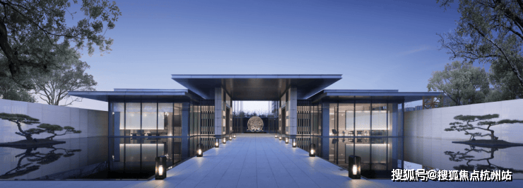 ◆二进|登门望府:以画景还原的方式,打造飘逸巍峨的“三重檐”,结合七开间秩序的建筑手法,还原传统中式大门的礼序考究。