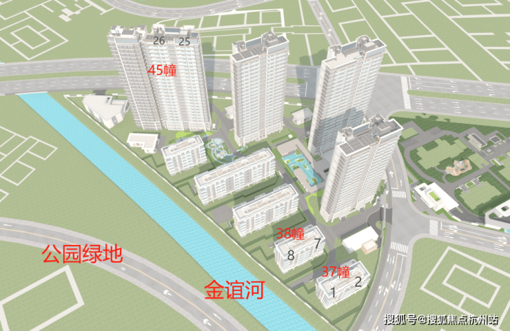 289、鸟瞰图:从空中俯视的整个区域的效果表现图。