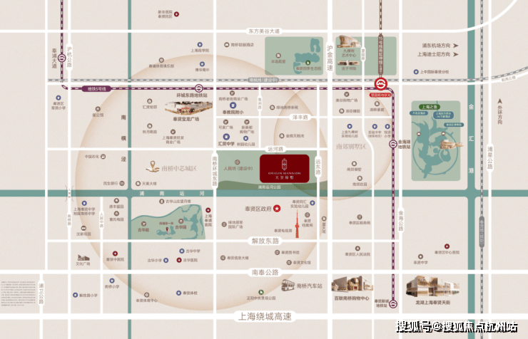 该地块位于南桥核心地段,南侧紧邻浦南运河休闲步道,北侧有S4高速出入口,紧邻地铁5号线环城东路站,1站至望园路站还可换乘15号线(南延伸段在建),进站直达紫竹高新园区和莘庄城市副中心,北侧还有市域南枫线(在建)环城西路站,周边三轨交环绕。