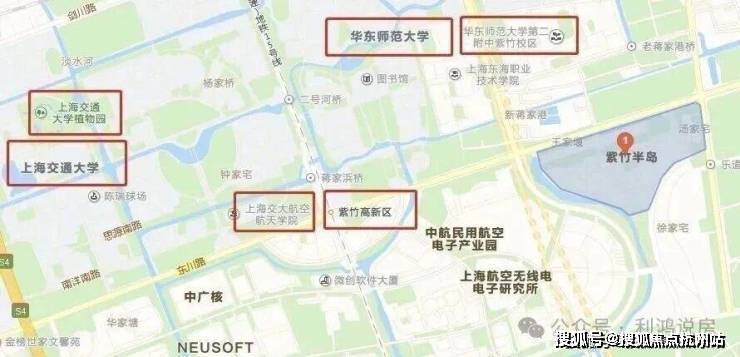 项目西侧是紫竹高新技术园区、北面是交大和华师大校园,以及紫竹基础教育园区,包含幼儿园至高中全龄段教育配套。