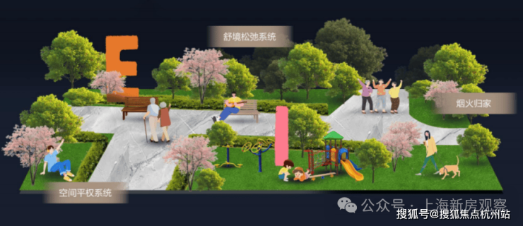 4、景观上,联发 ·时光新澍以 “全场景松弛系统” 为核心,将景观划分为 静音治愈、亲宠陪伴、自在休憩、街角松弛 等四大功能场域,每一处场景都承载着特定的情绪价值。