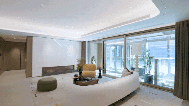 建面约235㎡户型客厅面宽近7米,外接阔景阳台,气派非凡。