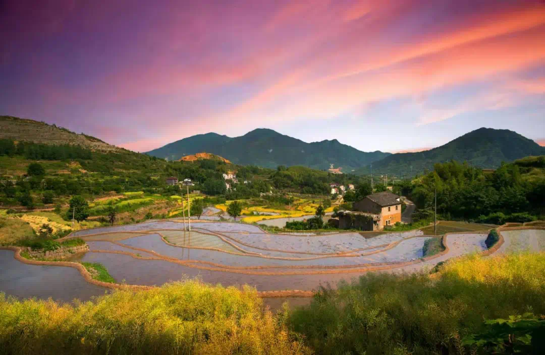 来桐庐陇西村,可以体验滑翔伞、住民宿、逛公园,还能采摘品尝新鲜的果蔬……