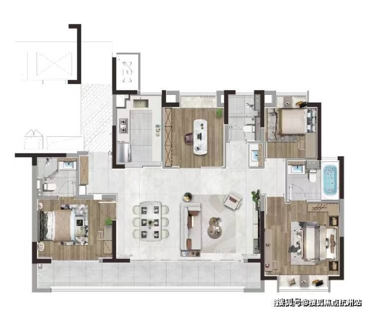 3. **户型设计及硬件指标**:主力户型为143-187平米的四居,以大户型为主。洋房得房率约85%,部分户型能做到四开间朝南、宽阳台和主卧套房设计,符合改善需求。车位比达到1:2,高于普通小区标准。