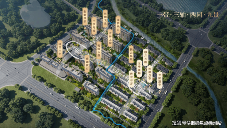 建发瑞湖示范区造凝萃江南灵秀与宋式美学精髓,一草一木皆暗含宋画意境,宛若展开一幅可居可游的立体《西园雅集图》。依循宋代造园理法,金山罕有东西双大门规制,东西两园分别以“三进”礼序,营造层层递进,以一带两园三轴九景谱写风雅入画的金山当代诗意生活之典范。