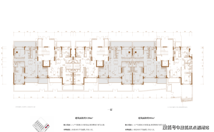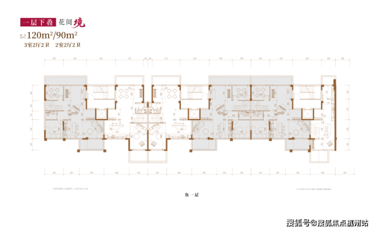 建面约120㎡3房2厅2卫/90㎡2房2厅2卫(一层下叠):