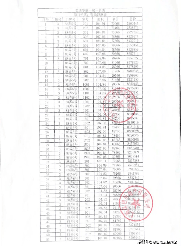 项目一房一价: