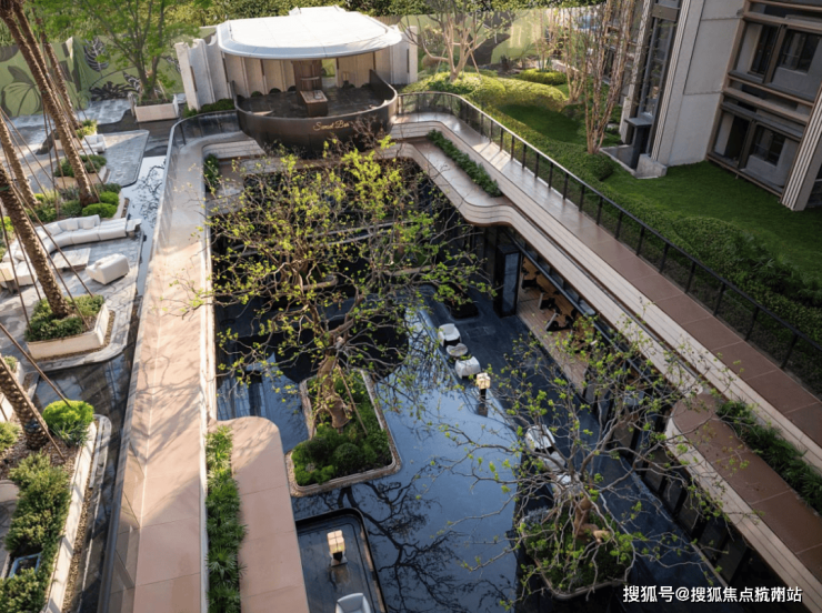 实景呈现的岛屿水院,作为保利天奕五座全球大师花园之一,在银海枣树阵、下沉式庭院、镜面池畔卡座的呼应中,成为未来居者沉浸自然的惬意之地。温柔闲适的落日廊吧,犹如身处海岛之畔,感受蓝调时刻的优雅情调。