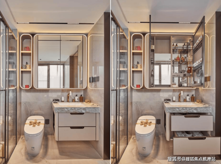 保利天奕特别关注到女性的生活需求,专门在卫生间配备了科勒美颜龙头、美妆镜柜、美妆冰箱,采用“顶+面双补光照明”,能把“女本位”需求做到如此细致,目前没有几个项目能做到!