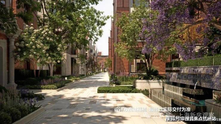 特别设计了八大映象典藏场景景观节点,有百年梧桐下的静谧巷道串联各景观节点,还有充满文化积淀的海派艺术庭院等,营造出精致、典雅的高阶生活氛围。