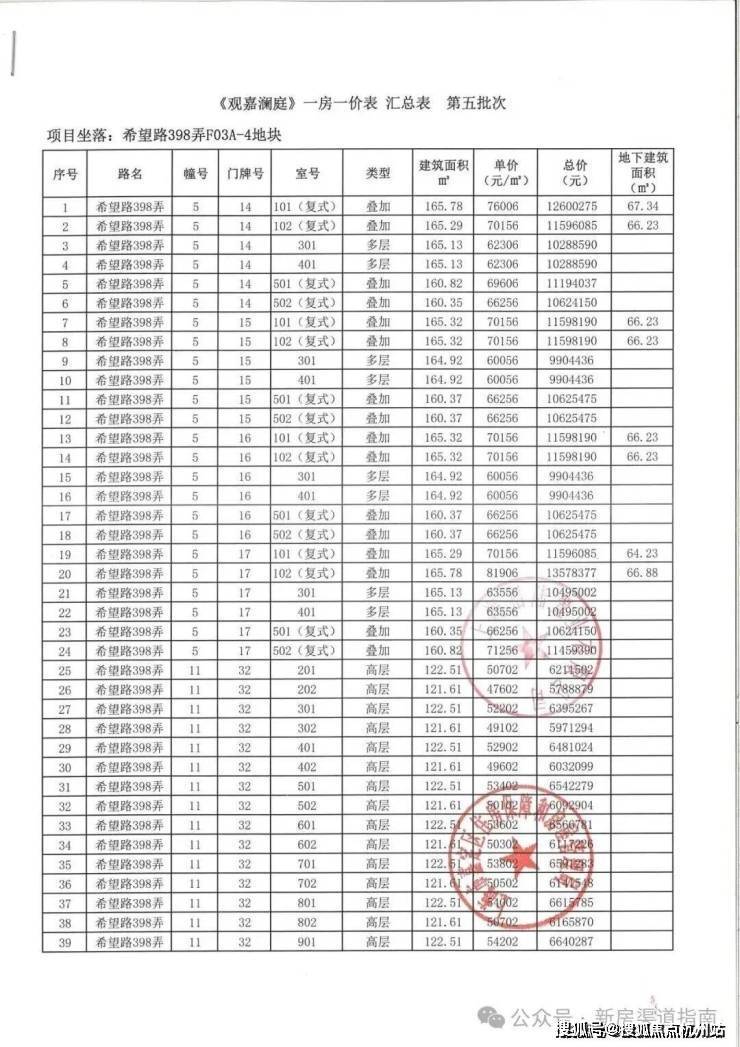 一房一价表如下: