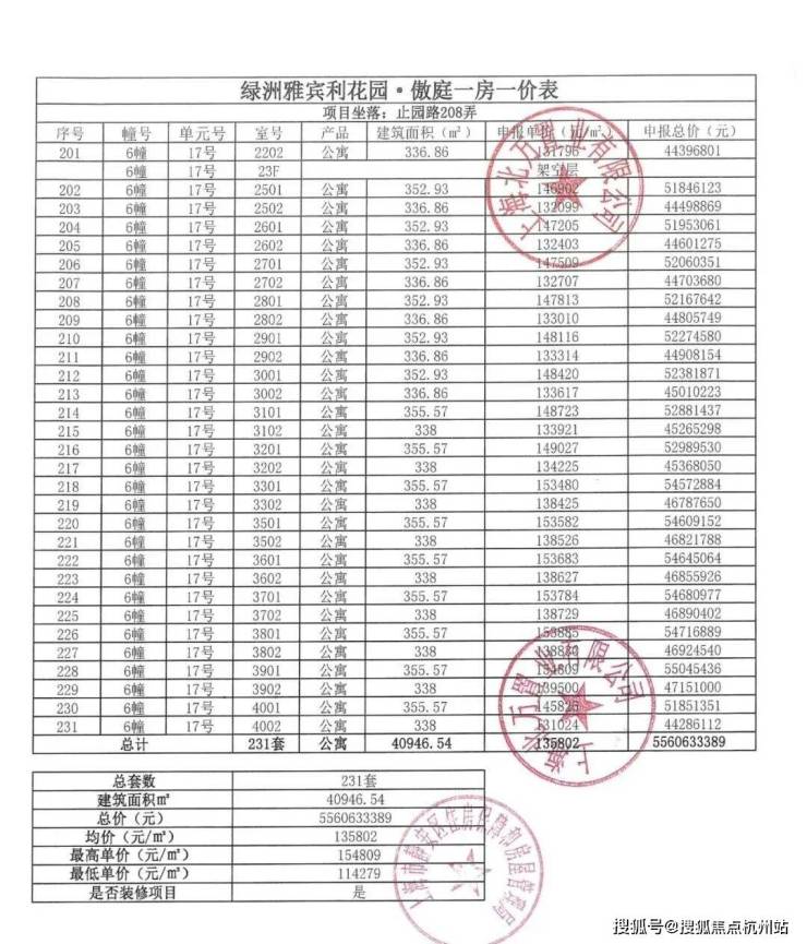 附:一房一价表