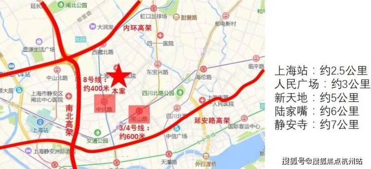 自驾方面:项目毗邻南北高架、内环高架,距离南北高架永兴路口仅500米,可快速到达苏河湾、人民广场、陆家嘴、静安寺等多个市级商圈,出行便利。