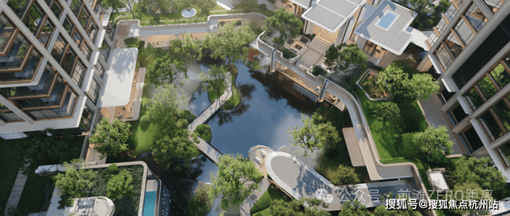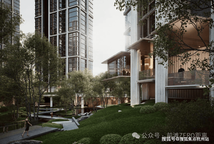 为此,澐启滨江提出打造上海首个“全息生境旗舰社区”。其核心是以约3500㎡的下沉水院为核心,通过约6.5米全域架空与约6米下沉庭院的巧妙叠合,塑造出落差近13米的“自然峡谷”,视觉冲击力极为震撼。