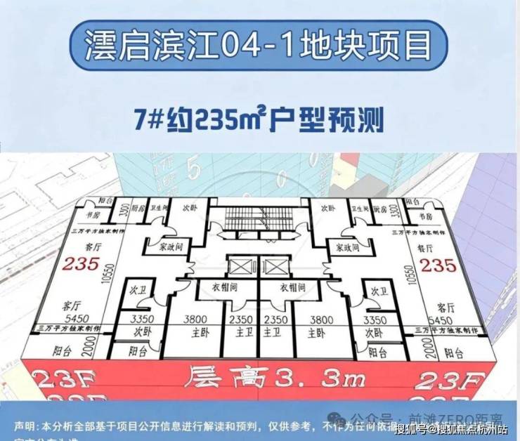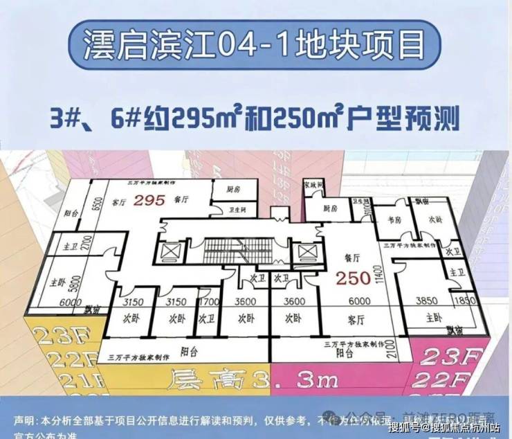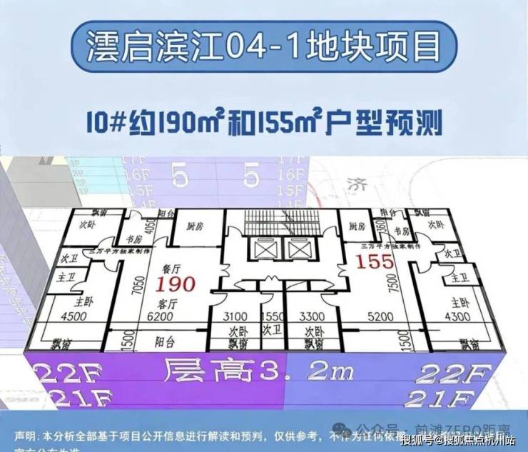 在户型分布上,新地块遵循景观资源最大化原则,将三栋住宅朝向东北偏转约45度,以最大化利用江景视野。面积方面,经过三万平方的预测统计,高层户型面积约150-360㎡,分别为150㎡、155㎡、190㎡、235㎡、250㎡、295㎡以及360㎡,层高约3.1-3.6米;具体信息以开发商最终公示为准。