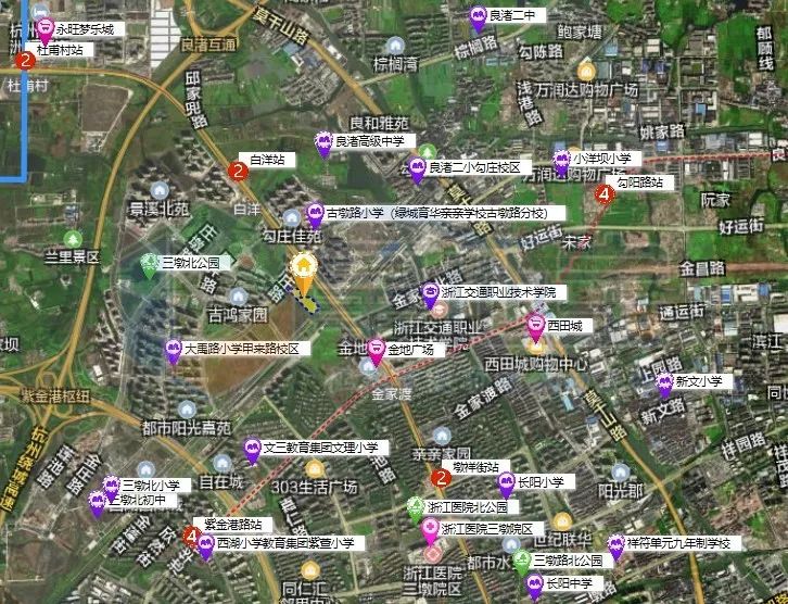 根据公示图,地块规划用地面积0.97公顷,容积率2.3,建筑密度22%,绿地率35%,建筑高度80米。地块距离地铁2号线、4号线换乘站金家渡站834米,周边路网发达,交通出行方便;周边教育配套有古墩路小学(绿城育华亲亲学校古墩路分校)、大禹路小学甲来路校区、长阳小学等;商业配套有金地广场,西田城,杭州303生活广场等;休闲配套有白洋港公园,三墩北公园,浙江医院北公园等;医疗配套有浙江医院三墩院区。