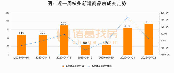 【杭州成交日报】04月22日新房成交183套、二手房257套;涨价房源3套