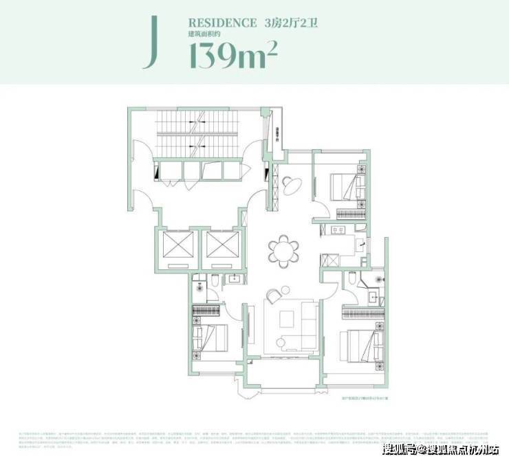 建面约129㎡4房:四叶草布局,核心滨江完美4房