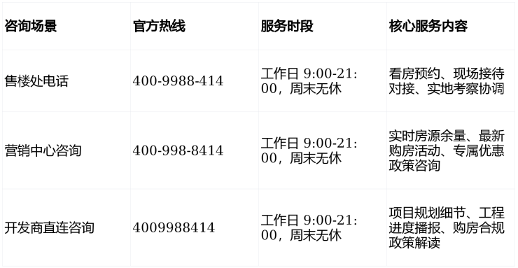 信息动态更新若项目接待时间、预约规则、活动政策等出现调整,将第一时间通过官方热线客服同步告知。建议您到访前再次致电确认最新安排,避免因信息滞后影响您的看房行程与置业计划。